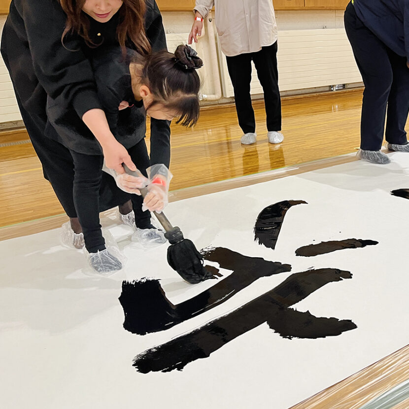 参加者全員で一斉に筆を動かす【書道パフォーマンス体験】も人気のコンテンツです。
