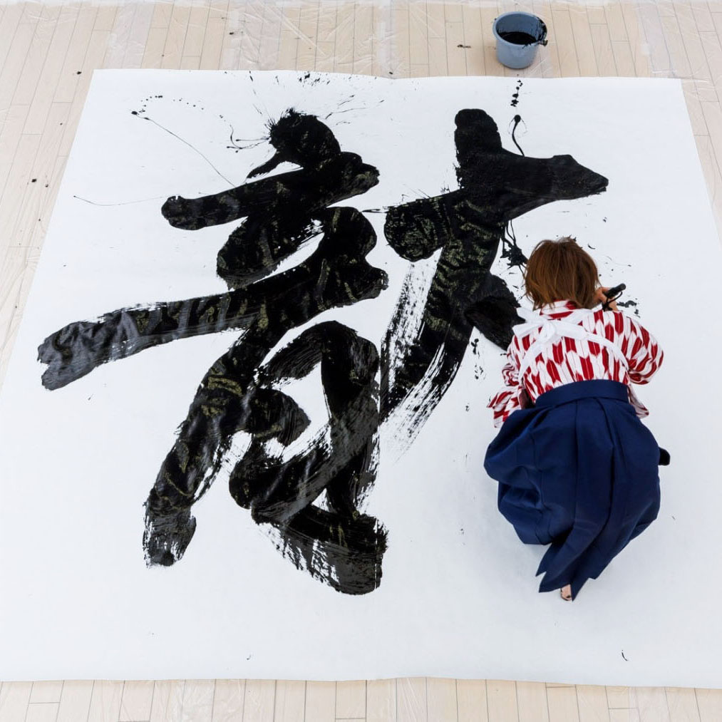 she began practicing calligraphy at the age of eight and moved to Tokyo in 2015 to become independent. Her work focuses on the theme of "providing vitality and spiritual nourishment through calligraphy and ink painting to people with dreams and wishes."